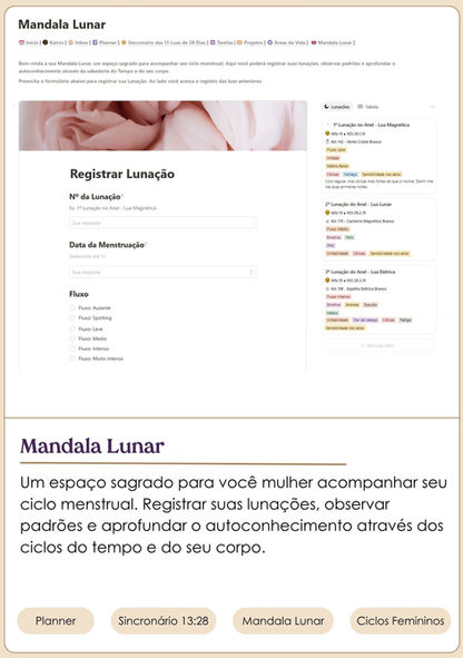 Uma ferramenta prática para organização e planejamento da sua rotina, tarefas, compromissos, hábitos e projetos, sincronizado com o Sincronário das 13 Luas de 28 dias.
