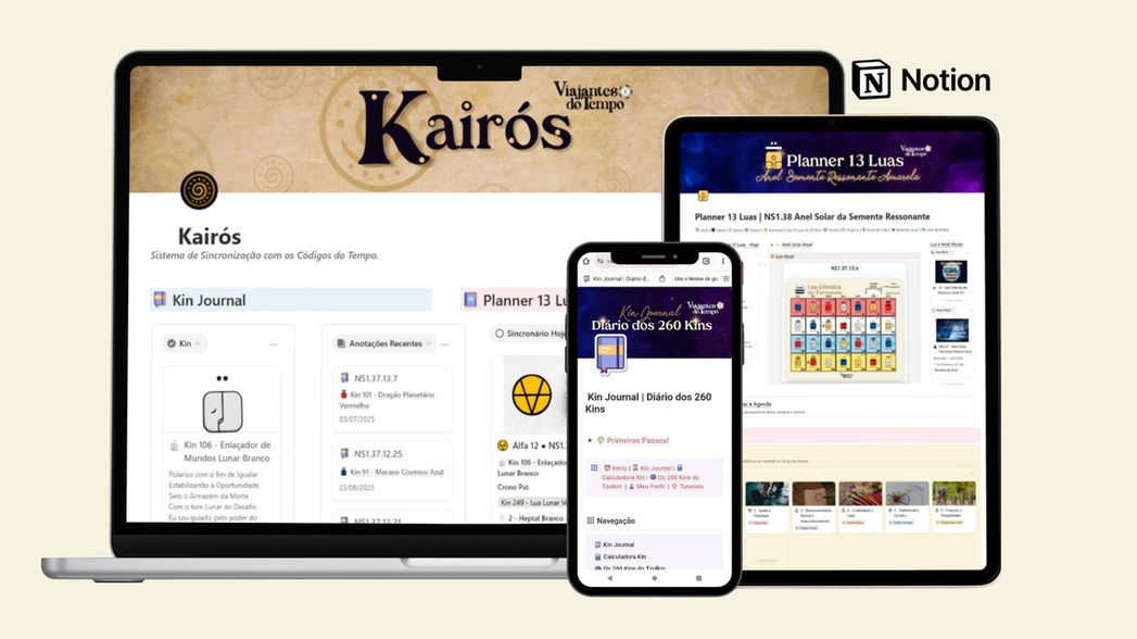 Kairós é um sistema digital completo para quem quer viver visceralmente a Lei do Tempo navegando a vida através dos Códigos do Tempo.
